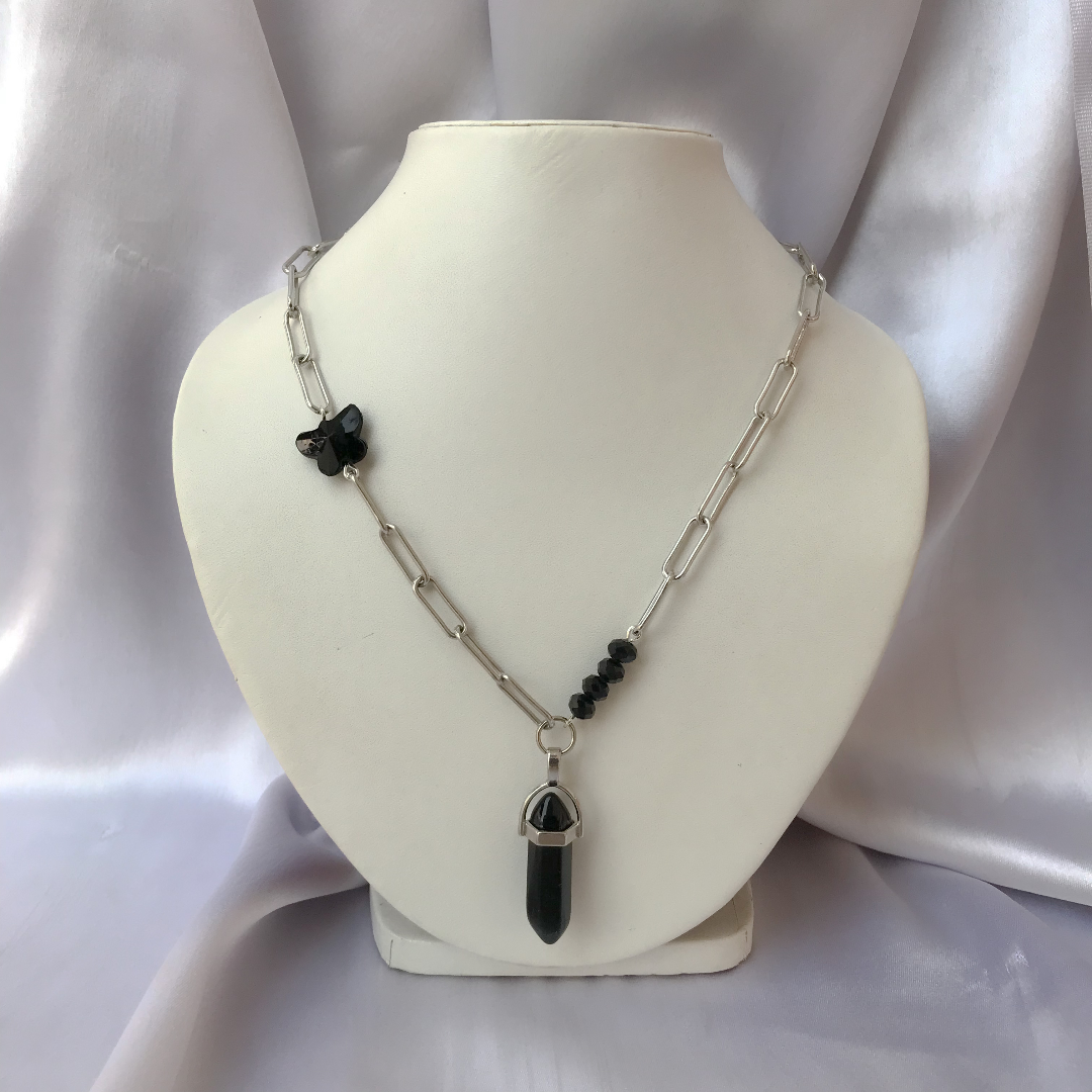 Stainless jet black crystal necklace