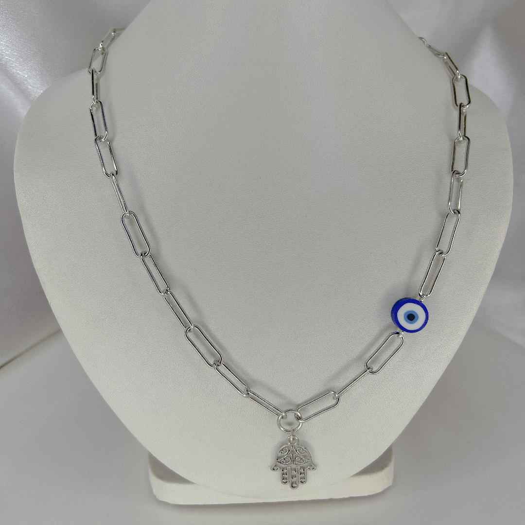 Stainless hamsa~evil eye necklace.