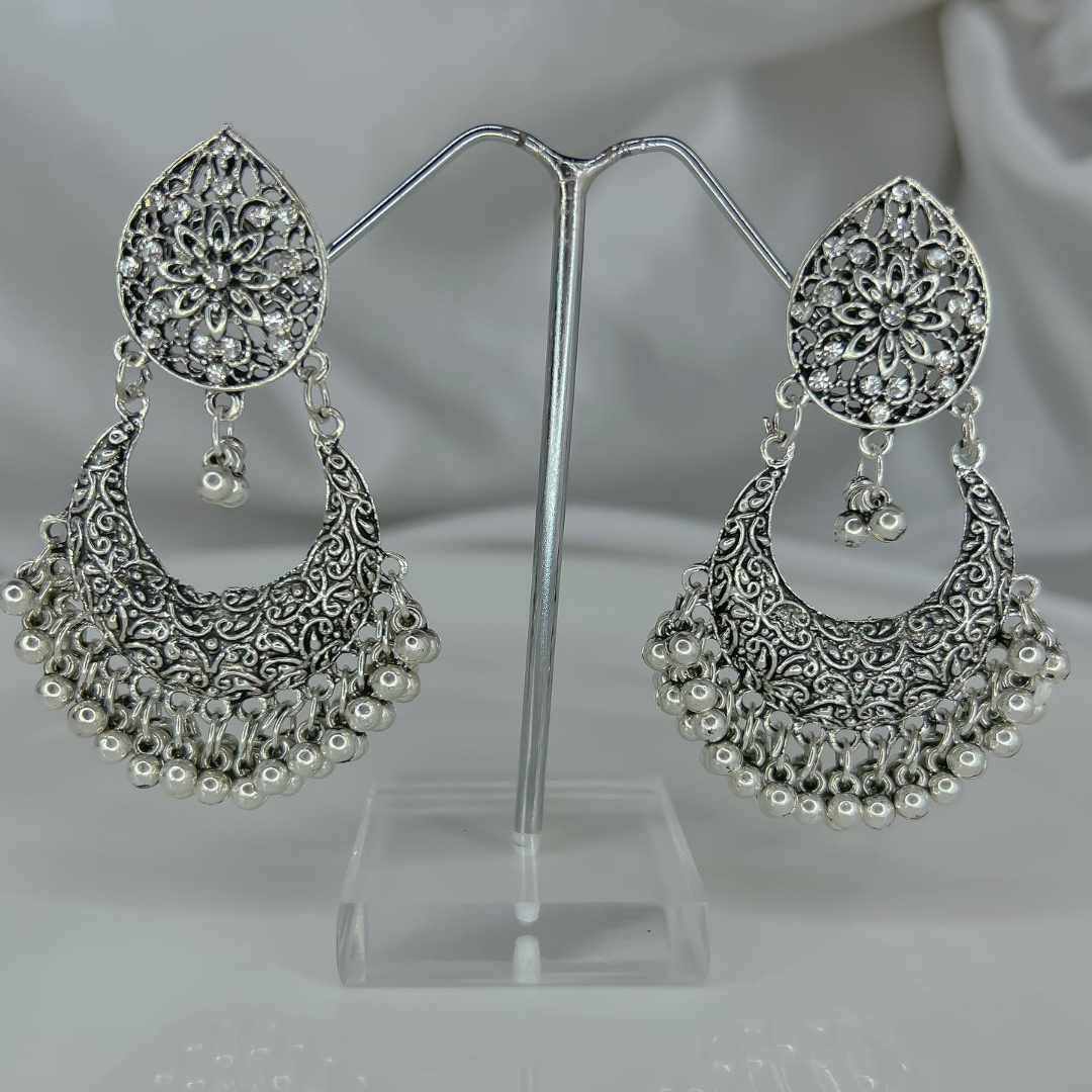 Trendy silver oxidized earrings