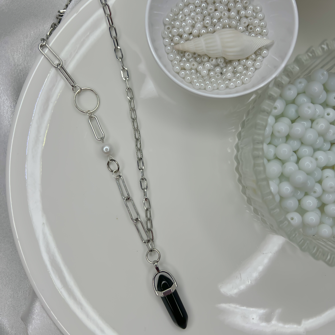 Unisex jet black crystal necklace